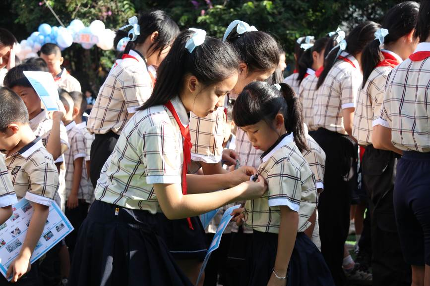 9月1日,广西南宁市民族大道东段小学举行2025年秋季学期“爱党爱国,自立自强”主题开学典礼。
