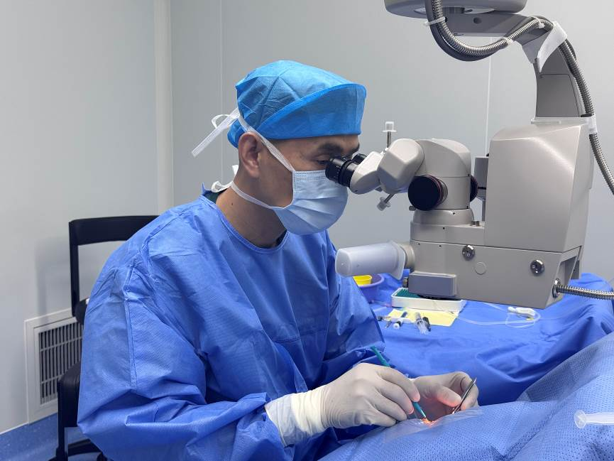 玉林华厦眼科医院副院长梁民正在开展手术。