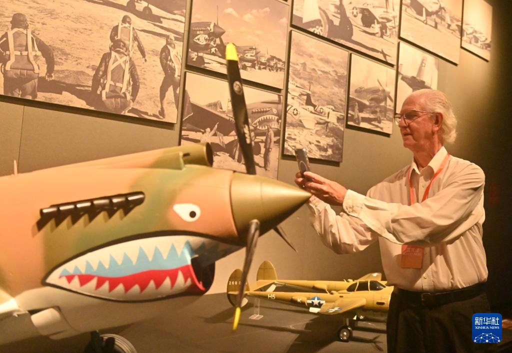 9月7日,在广西柳州市军事博物园,嘉宾在飞虎队常设展览上参观拍照。