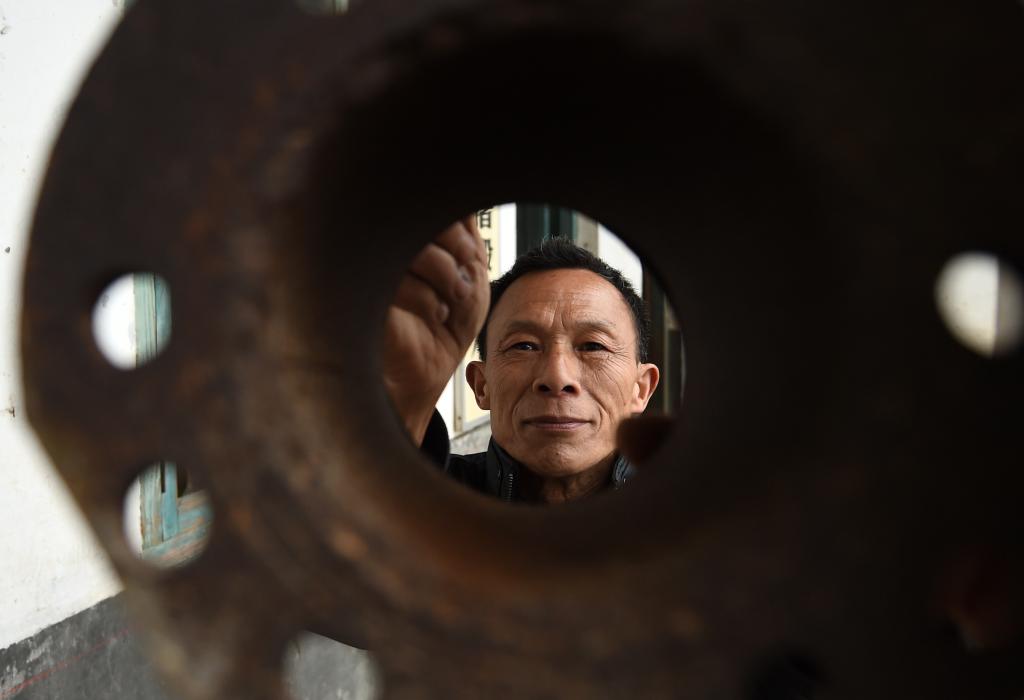 广西融水苗族自治县汪洞乡新合村达佑教学点指令作息“钟”是一截挂在教室外的废旧钢管。2019年5月28日,我到这里采访时,学校唯一的老师周宏军“当当”敲响这个“钟”,通知学生上课下课。当时,站了整整46年讲台的周宏军退休后返聘继续坚守这个大山讲台。46年时光里,他一直坚守这个大山教学点,教学点附近50岁以下的村民大多数是他的学生。这个“工龄”和周宏军老师教龄相当的“钟”,陪伴了许多村民的童年,又陪伴他们孩子的童年,甚至还陪伴他们孙子的童年。