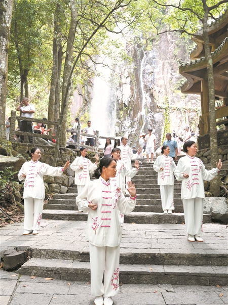 “这里太舒服了,感觉整个人都‘活’过来了!”近日,广东游客何女士在仙姑瀑布前来了个“森呼吸”,顿感神清气爽。