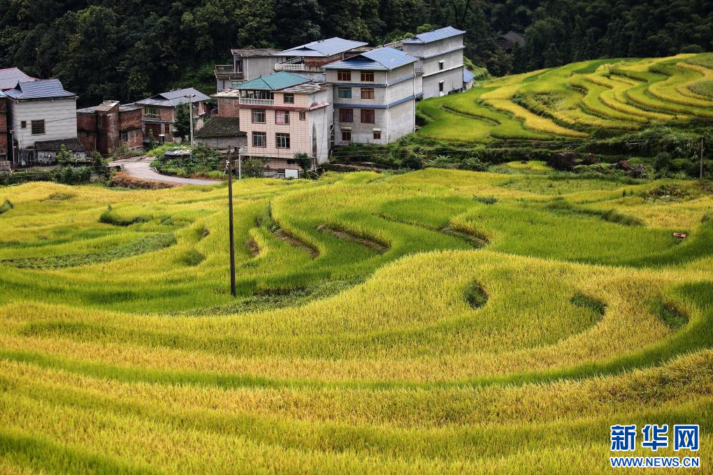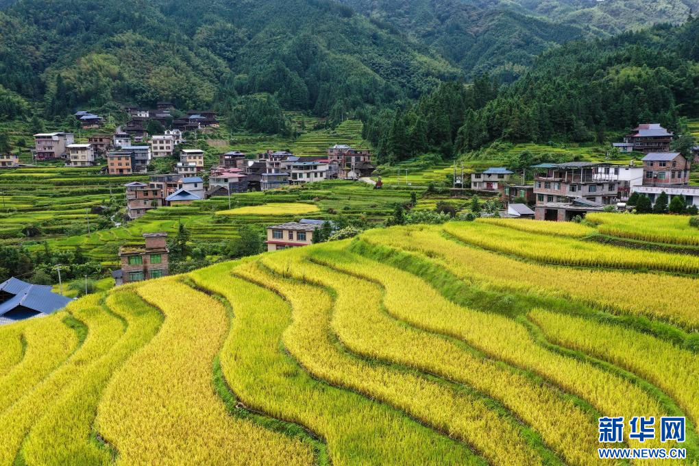 9月15日拍摄的广西融水苗族自治县同练瑶族乡朋平瑶寨与梯田。