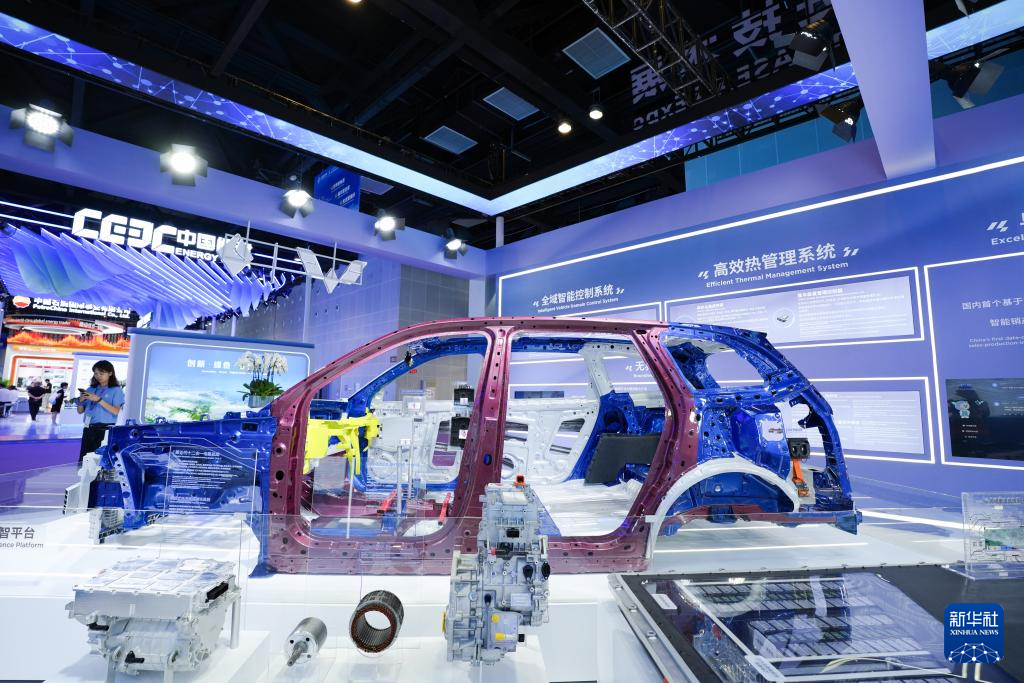9月19日在南宁国际会展中心拍摄的电动新能源汽车展台。