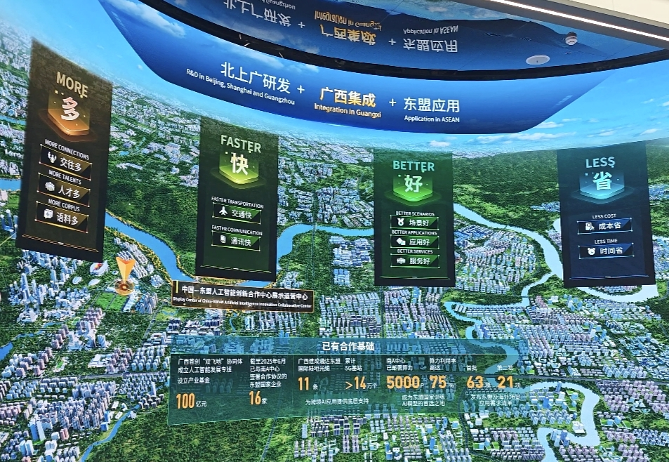 广西的“多快好省”四大优势,为南A中心的发展提供了强劲支撑。“多”体现为与东盟交往密切、小语种人才富集、小语种AI训练语料丰富;“快”得益于南宁是中国距东盟最近省会(首府)城市,且拥有国际通信业务出入口局,至越南通信时延仅3.5毫秒;“好”在于集成中国成熟AI技术,搭建中国—东盟可信数据专区及公共服务平台,提供“拎包即用”的全流程服务;“省”则体现在大幅降低合作沟通成本、缩短项目落地周期。