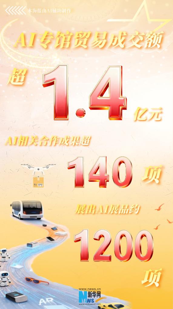 会议期间,共举办各类经贸促进活动88场,集中签约项目155个,其中产业类项目94个,“AI+”赋能千行百业项目44个,国际经贸类项目17个。形成系列AI相关合作成果超140项,AI专馆贸易总成交额突破1.4亿元。