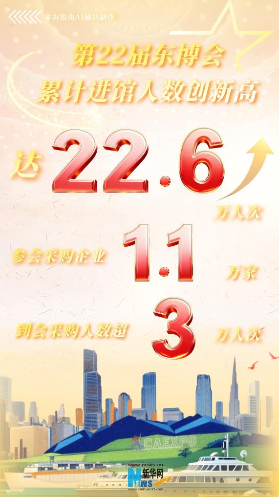 东盟等国际展览面积占比30%,东盟企业627家、占比32.8%,其中30%为首展企业。采购商参会踊跃,1.1万多家企业、超过3万人到会采购。截至9月21日下午3时,累计进馆人数22.6万人次,创下历史新高。