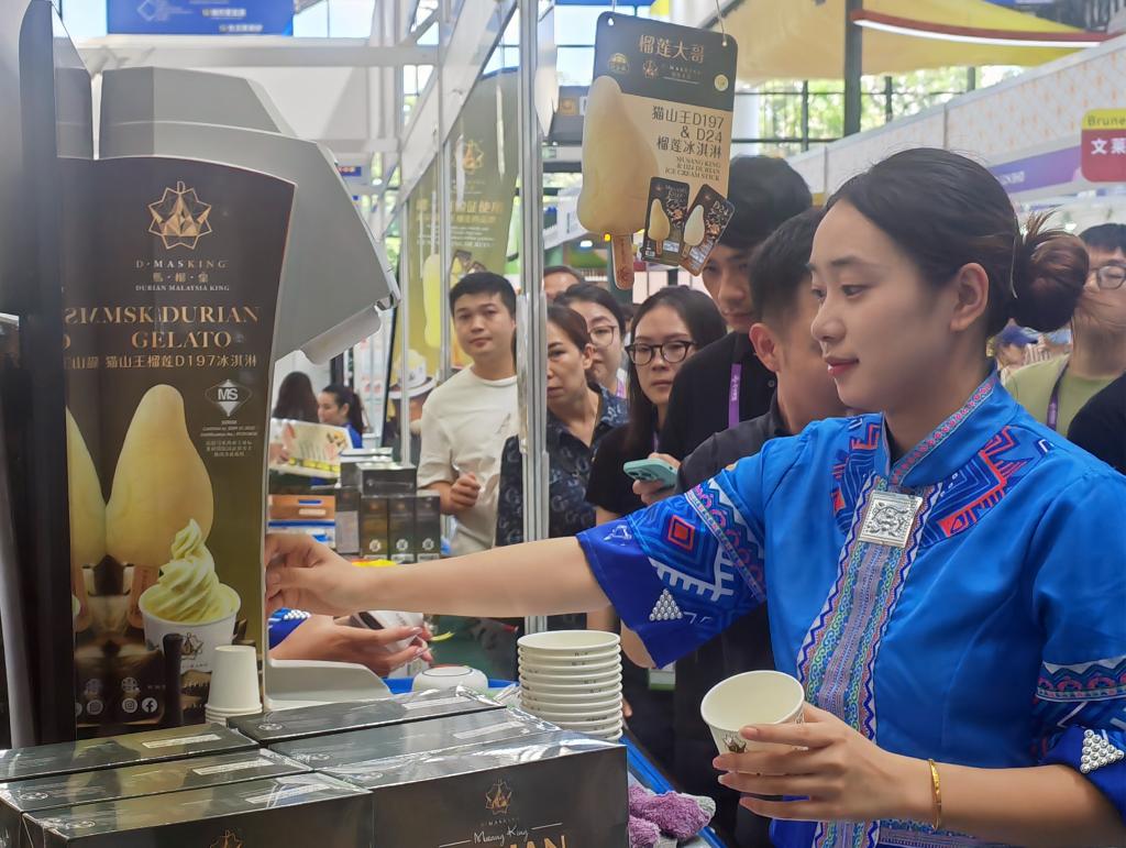 新华社南宁9月21日电(记者陈露缘、赵欢、吴思思)21日,第22届中国-东盟博览会迎来公众开放日第二天。在柬埔寨馆内,记者看到,许多观众手里都拿着一个“芒果冰棒”,还不时被询问在哪里购买。当记者找到展位时,参展商摊手摇头说:“今天已经卖完第五批货了!”