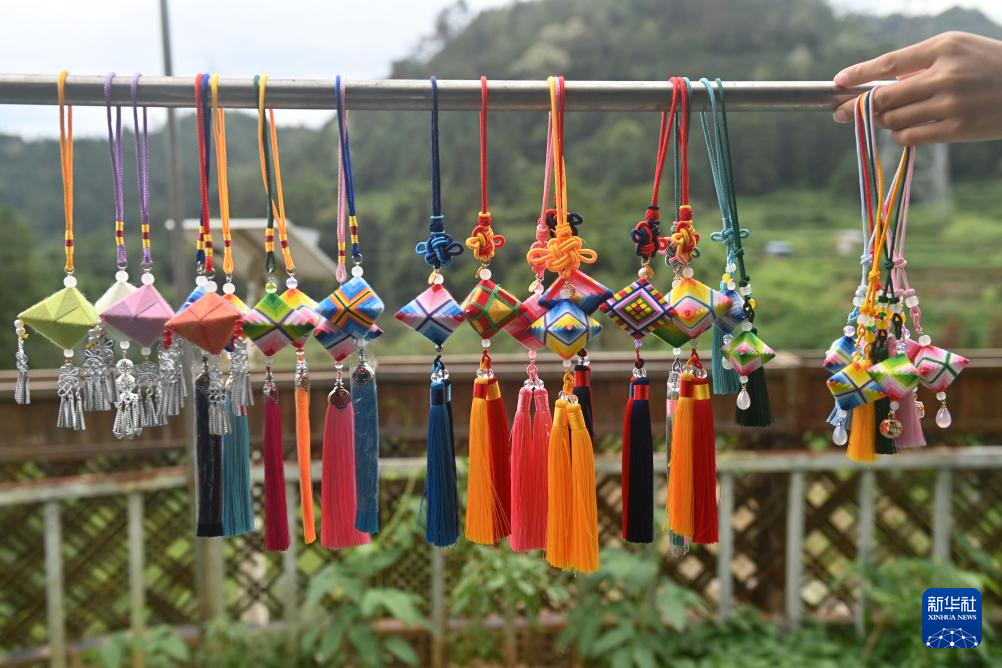 侗族吉祥花是广西三江侗族自治县的传统手工艺品,由心灵手巧的侗族女性一丝一线编织而成,融侗族印染、刺绣、织锦等技艺于一体,最早用来悬挂在风雨桥、鼓楼等公共建筑中,是祈求风调雨顺的吉祥饰品,其制作技艺列入柳州市非物质文化遗产代表性项目名录。近年来,广西三江积极研发文旅产品,侗族吉祥花从传统的公共建筑挂饰变成人们身上的寻常饰品,日益热销文旅市场。