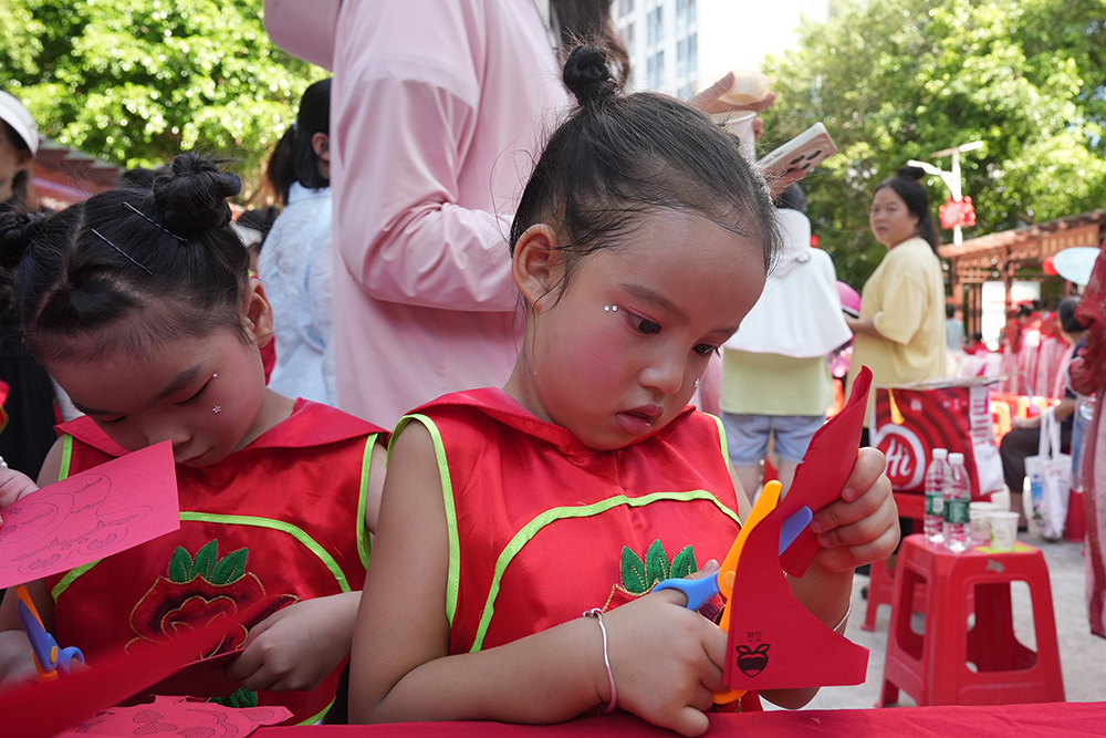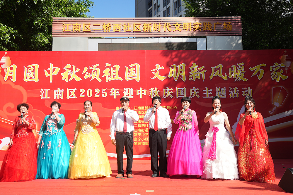 活动现场,民俗体验区香气四溢,南北特色月饼汇聚一堂,各族居民们边品尝边交流地域中秋习俗,在美食中串联起节日记忆。在中秋灯笼手工制作区,大人与孩子默契协作,裁剪、粘贴、书写祝福,亲手制成的灯笼挂满场地,将节日温馨氛围拉满。非遗展示区更是人气高涨,漆扇、剪纸传承人现场授课演示,居民们近距离触摸传统技艺的温度。文艺表演环节,民族舞蹈串烧尽显多民族艺术魅力,《我和我的祖国》《爱我中华》大合唱则点燃全场热情,群众自发跟唱,彰显了家国情怀的感召与共鸣。