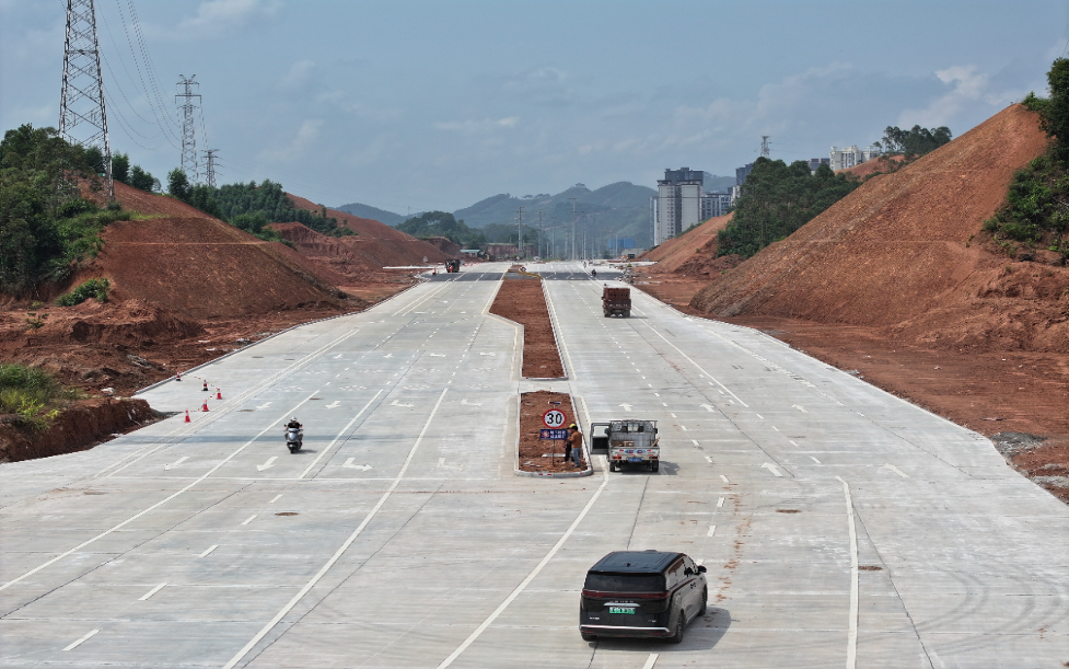据了解,新源大道此次通车路段为藤县工业大道A段工程,全长约1公里、宽40米,设计速度50km/h。项目自今年6月开工以来,施工团队抢工期、抓进度,加班推进主体工程收尾,最终确保节日当天顺利通车。“为了让大家国庆出行更方便,我们近半个月每天忙到傍晚,通车当天也留了专人保障通行。”中交二航局项目现场负责人王钢锋说。
