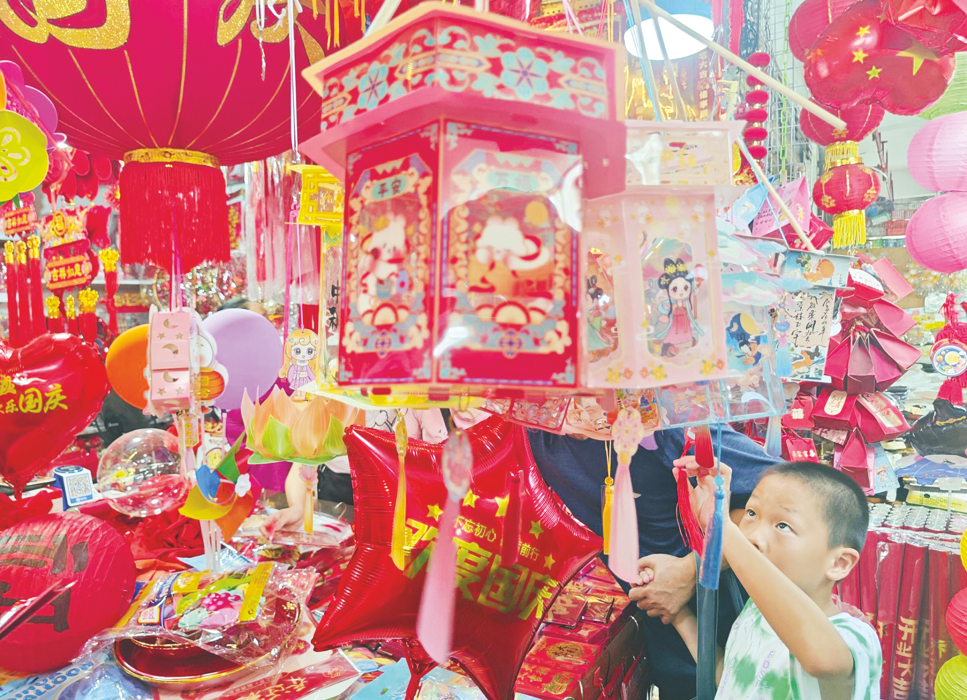 在儿童灯笼专区,新潮款式更受追捧。在南宁交易场多家小商品店,卡通造型灯笼被摆在显眼位置,哪吒、兔子、蜜蜂、金鱼等形象栩栩如生,部分还自带音乐与万向行走功能,一按开关便灯光闪烁、旋律响起,吸引不少小朋友驻足。“我儿子今年刚上小学一年级,他吵着要买哪吒造型的灯笼,还说同学们都喜欢这款。”市民陈女士拿起一款发光卡通灯笼说,这款灯笼折后仅售10元,孩子喜欢又不算贵。
