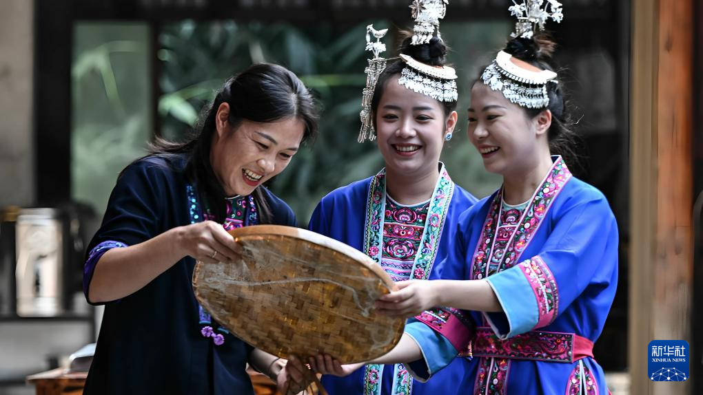 10月17日,侗族群众聚集在良口乡产口村的古榕树下,为展演做准备。