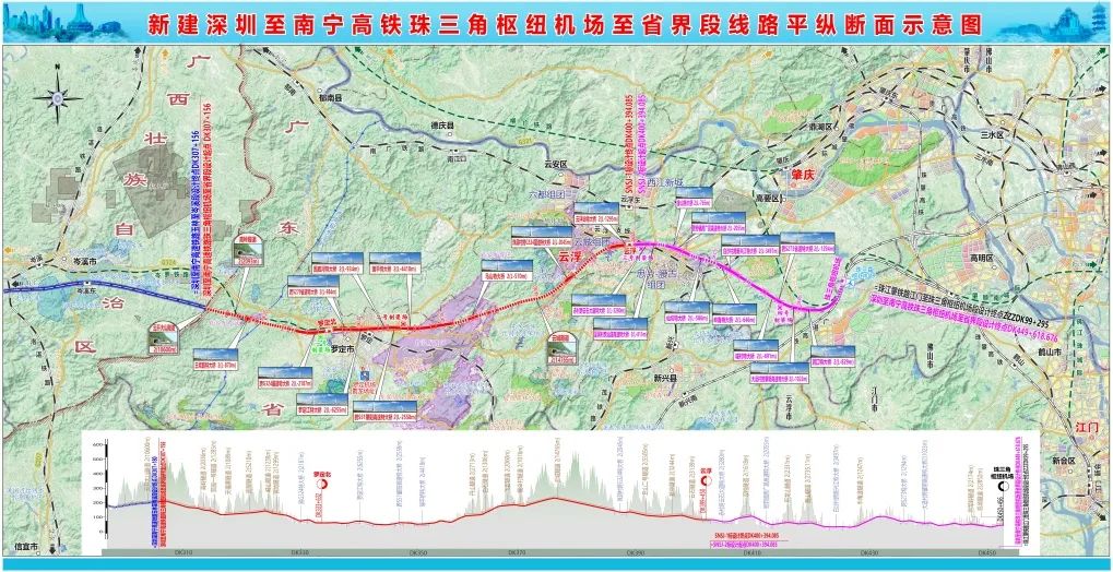 珠三角枢纽机场至省界段(142公里):设计速度350公里/小时,设云浮、罗定北2座车站。