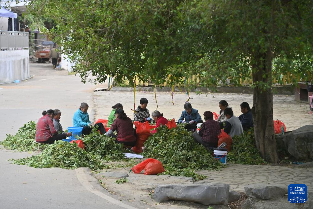 在广西柳州市融水苗族自治县安太乡元宝村,劳作归来的村民从树下经过(2025年3月20日摄)。