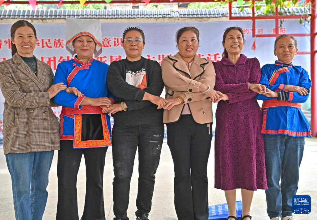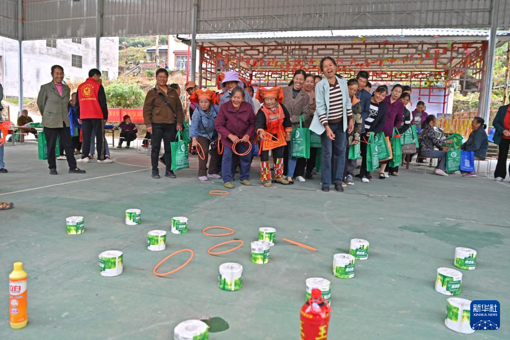 10月29日,两地群众在广西金秀瑶族自治县三角乡六定村进行重阳节游园活动。新华社记者 周华 摄