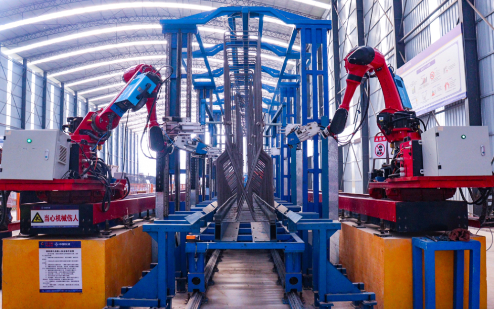 “机器人集成预制梁钢筋骨架智能生产线”是中交一公局四公司数智中心团队聚焦钢筋工程加工与安装自动化工艺研发的核心成果,项目基于自研数控设备、机器人、物联网等新一代信息技术,实现预制梁钢筋骨架加工的自动化、精准化作业,通过机器人协同完成钢筋下料、定位、绑扎、焊接等全流程作业,有效破解传统施工中钢筋间距偏差大、绑扎质量不稳定、人工成本高的行业痛点,显著提升了施工质量与效率。该技术可拓展应用于盖梁、新泽西护栏等钢筋部件生产场景,为行业智能建造提供了可推广的解决方案。(冯瀚韬)