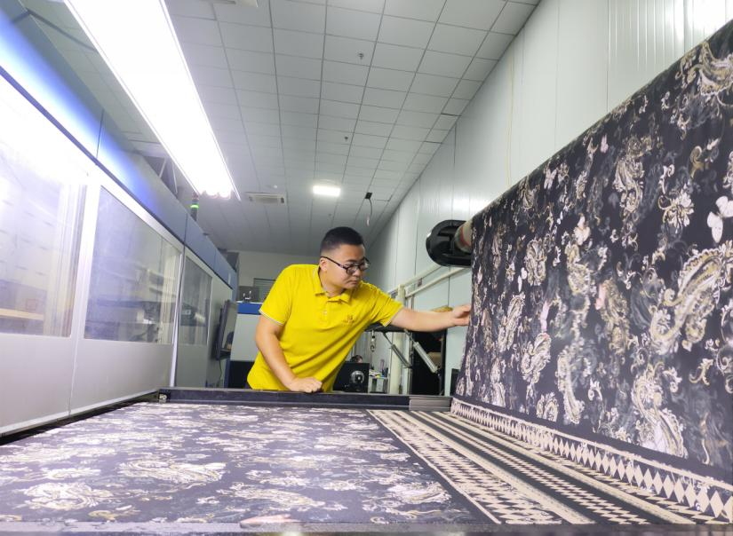 走进忻城茧丝绸产业园智能厂房,自动络丝机正高速运转,将绞装丝精准转化为筒装丝;车间内的温湿度传感器实时调控环境参数,将生丝品质稳定锁定在5A级标准。数码印花区里,14台高速设备组成柔性生产线,将电脑端的彩色图案精准复刻于布匹之上,实现“所见即所得”的印花效果。