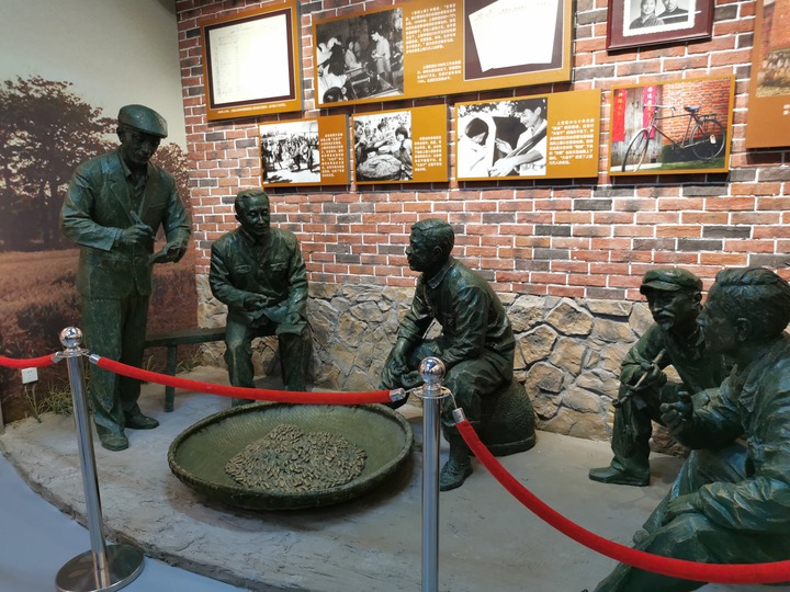 2021年,江苏省宿迁市泗洪县上塘镇垫湖村“春到上塘”纪念馆,塑像重现当年新华社记者采访时刻。组图均为段羡菊 摄