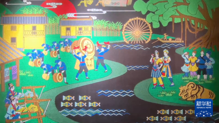 如今,壮锦的生产通过机械化,解决了宽幅和产量的问题,用途也从头巾、布袋、婴儿背带等传统物件,拓展至日常生活多个领域。