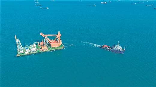 11月14日,世界最大抓斗挖泥船“金广”现身北部湾海域,开足马力,投入防城港港30万吨级进港航道扩建工程施工(见上图),推动项目迈入高效攻坚新阶段。