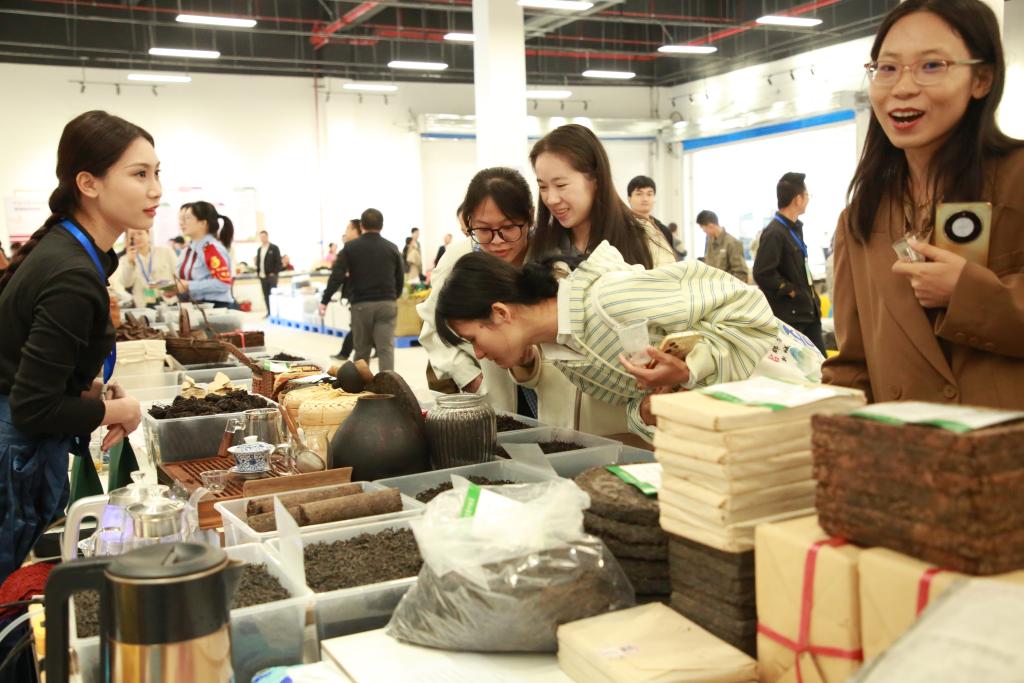 2025中国黑茶大会期间,黑茶名品展吸引了不少茶友前来观展。(杨扬 摄)