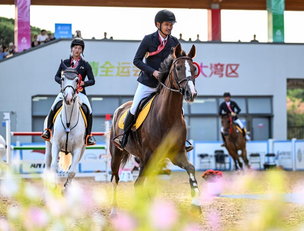 新华社深圳11月17日电(记者黄耀漫、肖世尧)17日,第十五届全国运动会马术项目场地障碍团体决赛在深圳光明国际马术中心举行,广西队人马配合更为默契,以总罚分29分夺得冠军,广东队和内蒙古队分获二、三名。