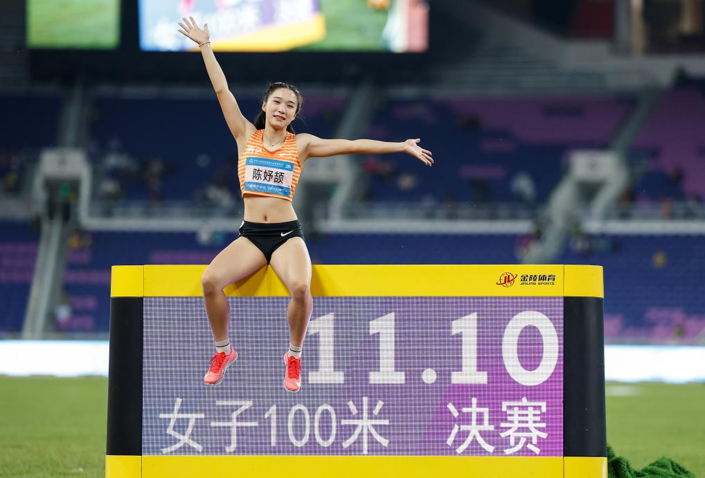 女子100米决赛中,陈妤颉逐渐建立较大优势,最终把个人最好成绩提升了0.19秒。“其实跑得很放松,把自己的技术发挥出来了,之后还是要再把这个技术给稳定下来。”陈妤颉赛后说。