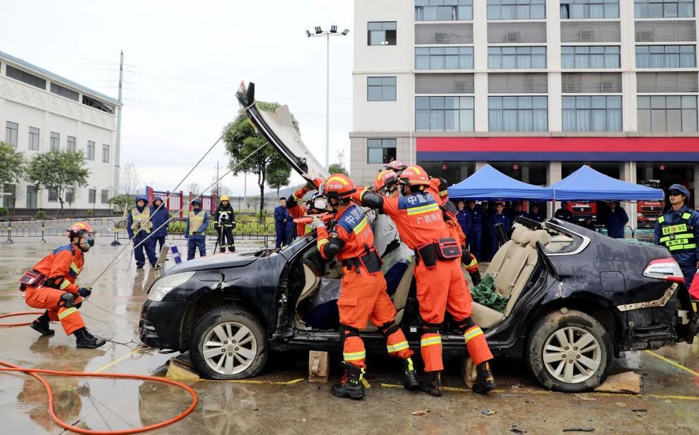 本次比武紧密结合消防救援队伍实战需要,重点检验队伍整体作战能力,设置了理论考试、预案推演、100米负重、居民自建房破拆内攻救人操、复杂山岳地形搜救转运操、车辆事故处置救援操、正压式空气呼吸器组装测试操等项目。多维度的竞技项目既是对体能、技能练兵成效的大考核,也是对灭火救援实战能力的检验。