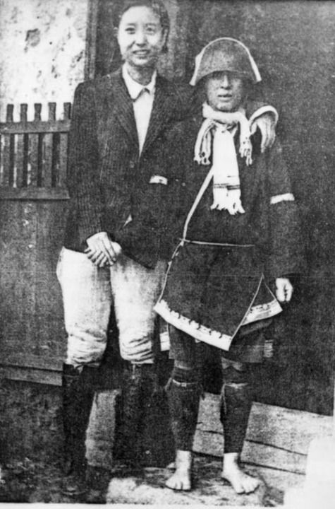 1935年,王同惠在大瑶山与“老同”、花蓝瑶姑娘蓝妹国合影(资料照片)。