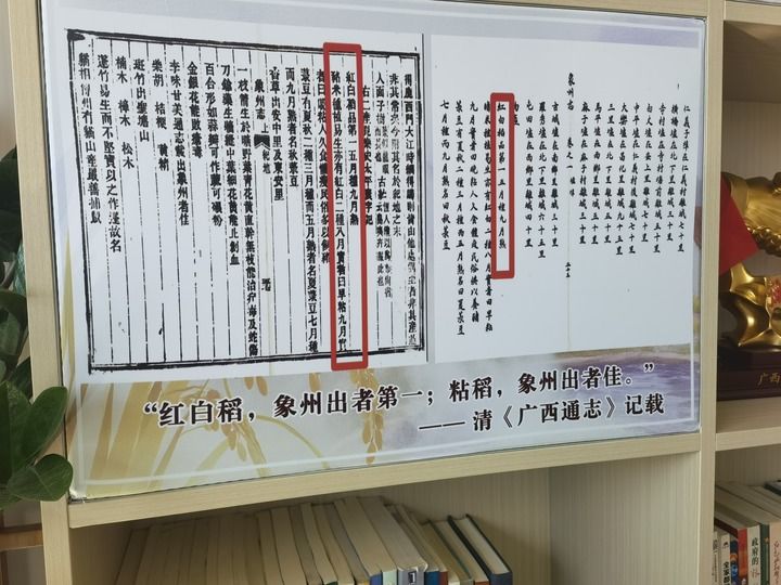 广西象州县寺村镇一米业公司展示当地盛产好米的历史资料。新华每日电讯记者段羡菊摄