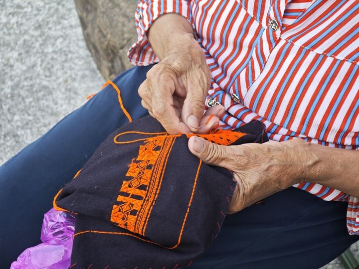 在广西金秀瑶族自治县六巷乡门头村王桑屯,一位妇女正一针一线缝制瑶绣。新华每日电讯记者农冠斌摄