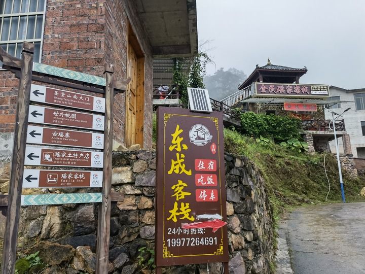 沿着高坡下一条狭窄的石板路,我们来到六巷屯一家民宿“云山居”,位置就在费孝通、王同惠借住过的蓝妹国家房前下方。外表是原汁原味的农村老房子,黄泥墙,门前立着大木柱子,进门是一个山货柜,楼上则布置了多间客房,坐在小布凳子上可以悠闲地欣赏山寨风光。