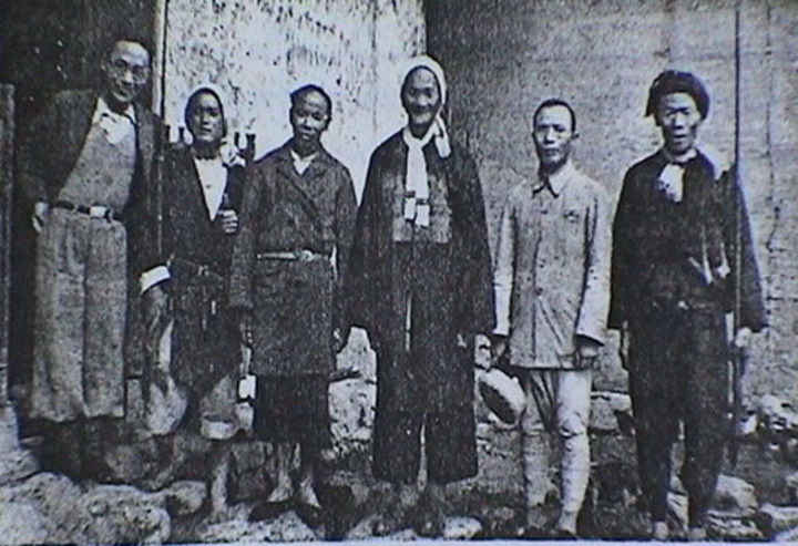 1935年费孝通(左一)在大瑶山与当地群众合影。(资料照片)