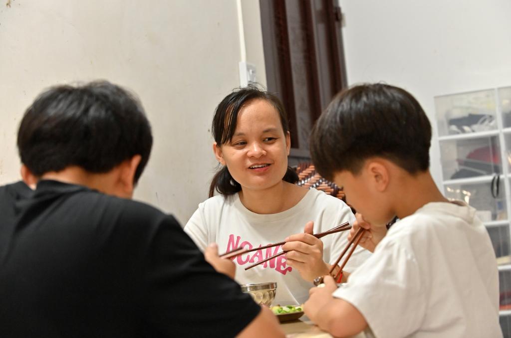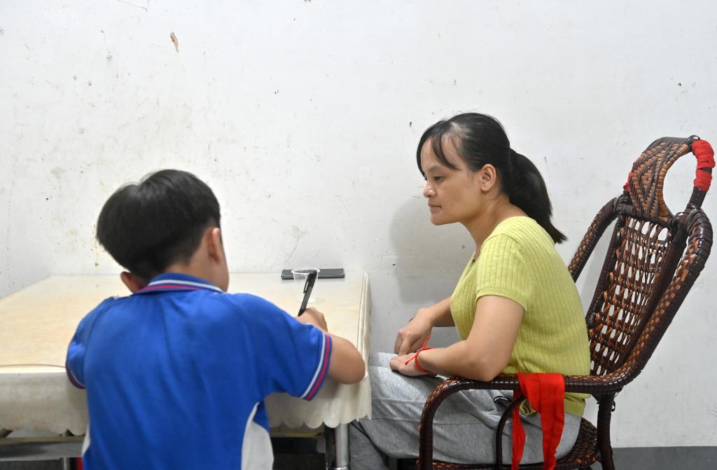 2025年10月14日,我到凤山县凤城镇廉租房小区采访蓝野针,她的爱人到外省务工了,蓝野针一个人照顾着两个正在上学的儿子。每天,在照顾小孩和做家务之余,她或听文学作品朗读或写作。