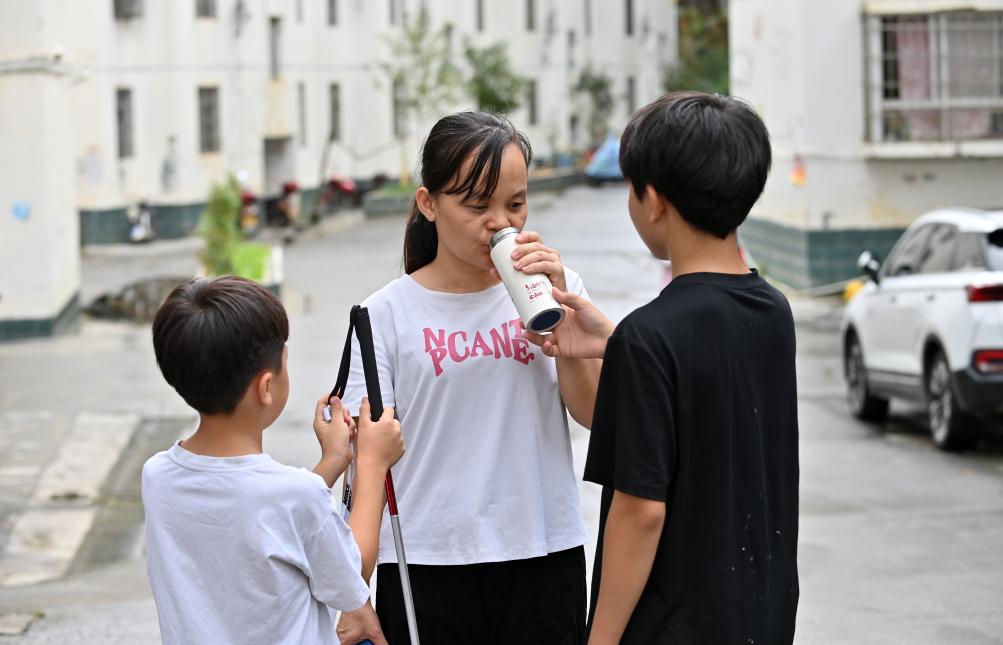 没想到,不幸再次降临到她的头上。2018年4月,正在广东打工的她,不幸患上双眼视网膜血管瘤等疾病,最后双目失明。那时,蓝野针已是两个孩子的妈妈,一个两岁半,一个五岁半,“眼前的生活就像我看到的世界一样黑暗,找不到出路。”蓝野针说。
