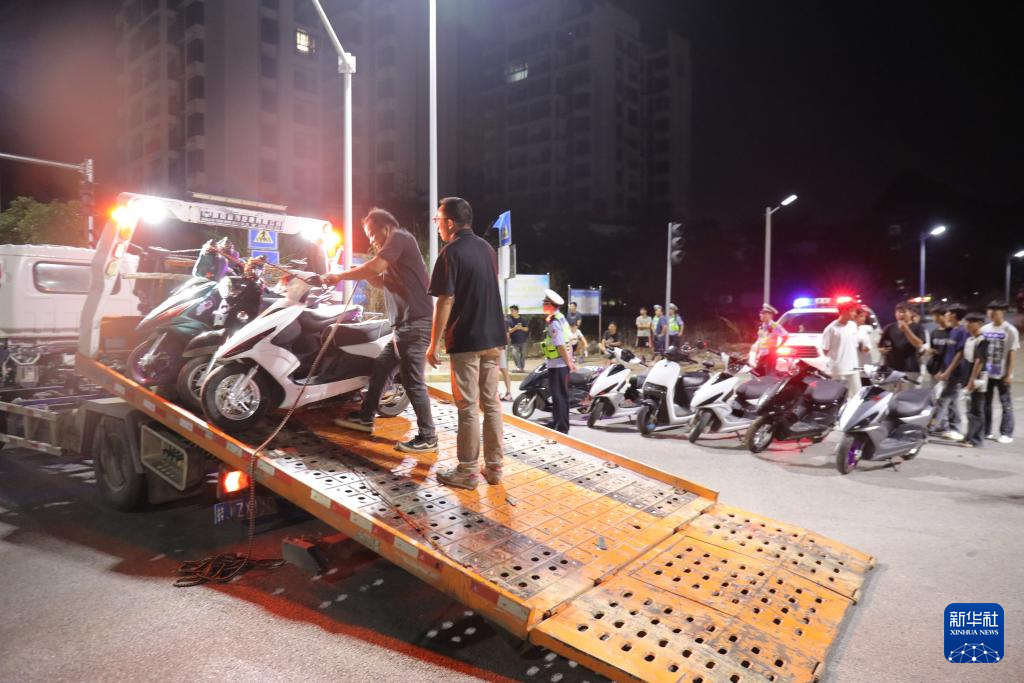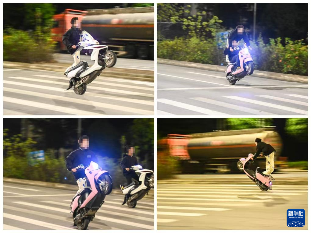 9月28日,广西贺州市公安民警对“鬼火少年”驾驶改装电动自行车“飙车炸街”等行为采取执法行动。