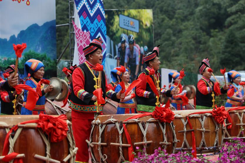 赛道沿途的会鼓表演(马山县摄影家协会供图)