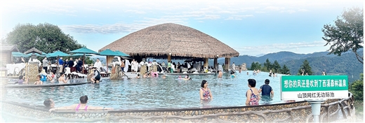 里松云瑶谷温泉度假区内独特的“瑶浴温泉”受到游客喜欢。 广西云-广西日报记者梁盘生/摄