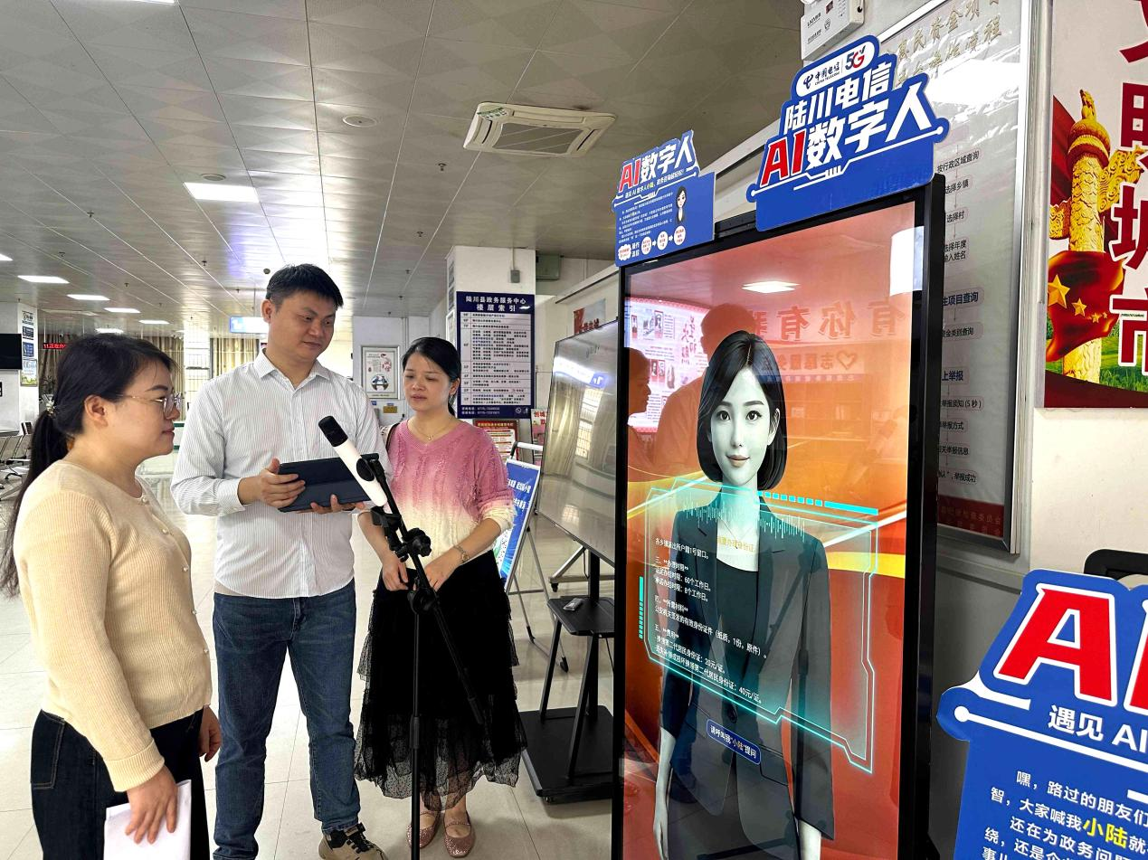 AI数字人“陆小智”在陆川县政务服务中心“上岗”。