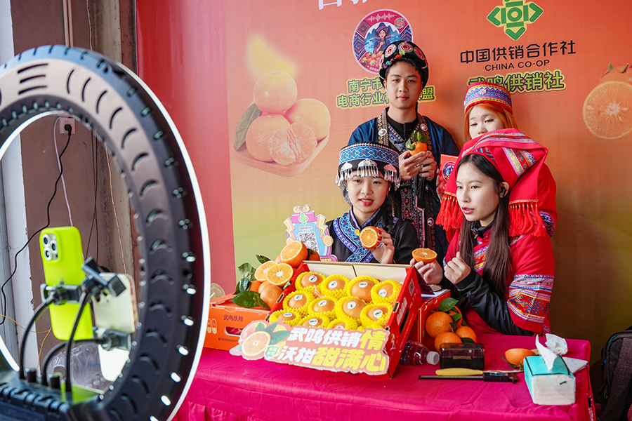 线上渠道多点开花,让沃柑香甜触达全网。开市当天,武鸣本地电商直播间人气爆棚,主播手持沃柑向网友推介:“这就是我们武鸣的‘黄金果’,皮薄肉嫩、一口爆汁!”黄家瑜介绍,当地积极培育本土主播队伍,组建电商“村播联盟”,以乡音乡情传递产品魅力;高校大学生自媒体团队的加入,更为线上销售注入新鲜活力。2025年,武鸣沃柑电商销售额突破6亿元,同比增长超30%,线上渠道在国内销售额中的占比持续扩大。