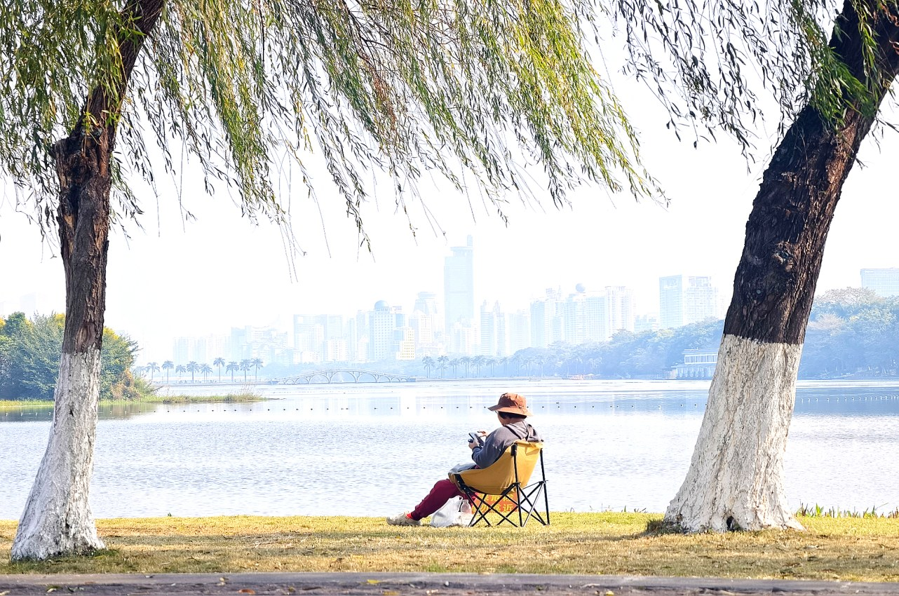 昨日持续晴天,市民在南湖公园享受暖阳。记者宋延康 摄
