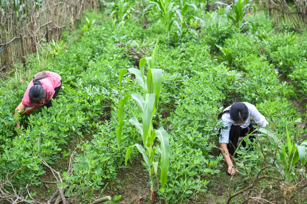 彼时,网上的热度并没有过多影响到刘燕,她每天一如既往地帮妈妈做家务和农活。来到刘燕家的菜地旁,为了避免不必要的干扰,我悄悄蹲在一棵果树下,准备用手中的相机记录下她日常生活的瞬间。