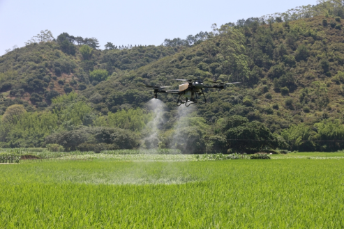 无人机为水稻喷药作业。李洪健 摄