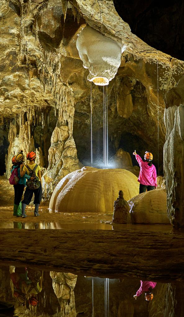 “探洞因体验新奇吸引了不少游客,本身的风险和难度虽然不大,但地下洞穴情况复杂、分叉口多,我们会及时做好引导,不探未开发野洞,不单独行动,全程佩戴头盔等装备,关注落石、暗河等风险。”周正苏说。