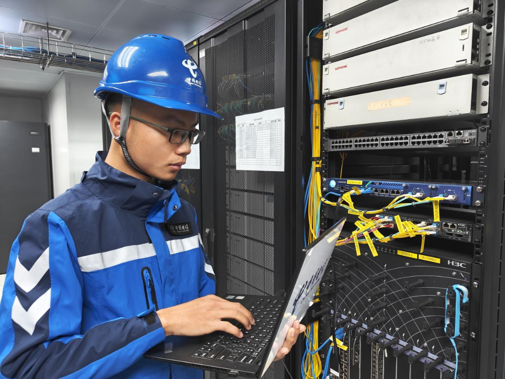 1月20日,工作人员在贵港市人民医院中心机房维护AI医学影像远程诊断云平台。