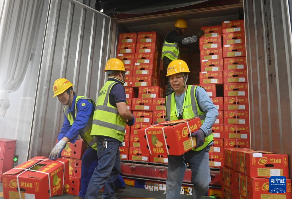 1月27日,在广西爱店口岸,工人将通关后的货物搬下车,准备接受海关检验。