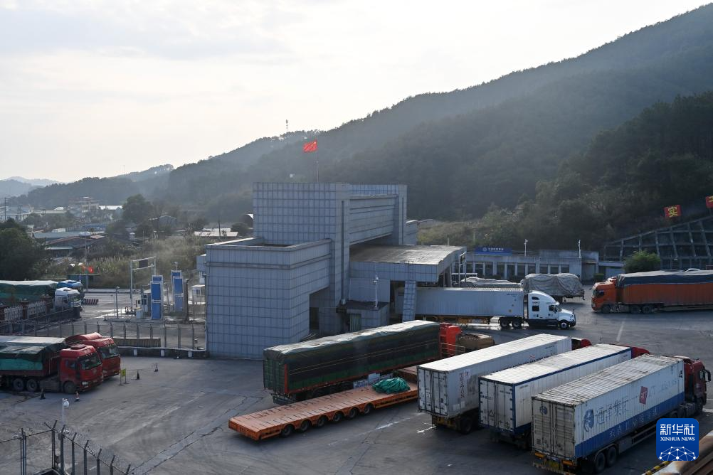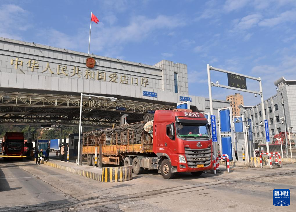 1月27日,一辆货车通过“快捷通”通关系统核验后通过广西爱店口岸。