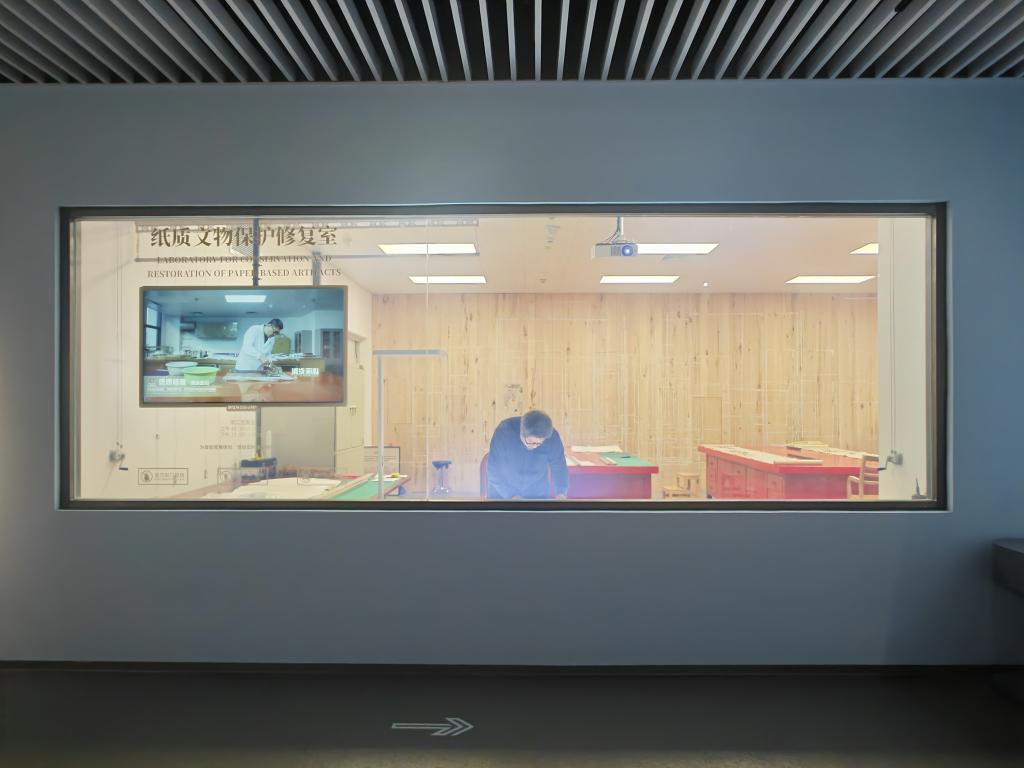 纸质文物保护修复室因“破墙开窗”成为了展览的一部分。新华社记者 陈露缘 摄