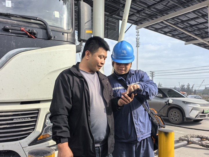 曾经最让他烦心的续航问题,如今也有了改善。这辆电动重卡电池容量是420千瓦时,冬天满载实际续航约220公里,总要精打细算规划路线。“现在重卡充电站越来越多,方便多了。”这一趟,他刚从防城港东兴市卸完货赶回来,要赶在前往北海前,把电量补满。