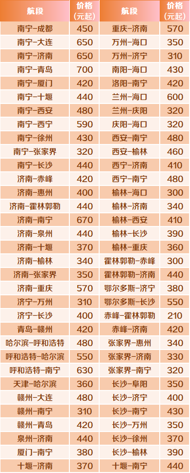 3月正值春节后、“五一”前的传统出行淡季,机票价格普遍回落。北部湾航空顺势推出系列特惠活动,多条航线票价较平日下降10%至50%,部分航线票价甚至低于高铁二等座。3月29日至4月2日,北部湾航空将投放一批特惠机票,覆盖南宁、厦门、榆林、西安、烟台、济宁、济南、泉州等航段,国际航线亦保持亲民价位。(张言坚)